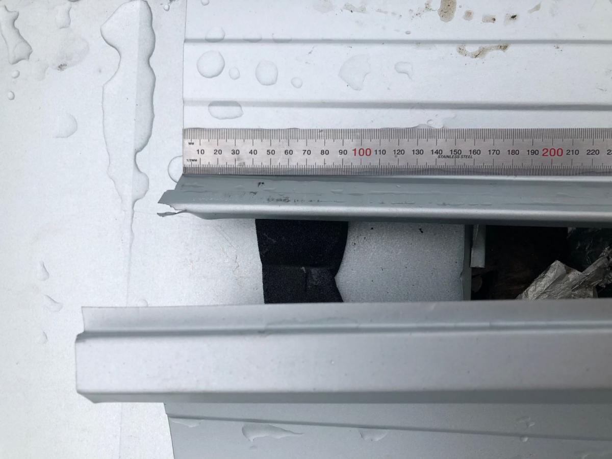 It would have been prudent to extend the main roof sheets out to the full extent of the structure This would of required some minor adjustments to some battens only.The sheeting with the dents require he sheeting lifted and a 1 mm profiled support placed underneath to re-install the integrity back into the sheeting. Remove lower roof sheeting and install insulation as per quote supplied .