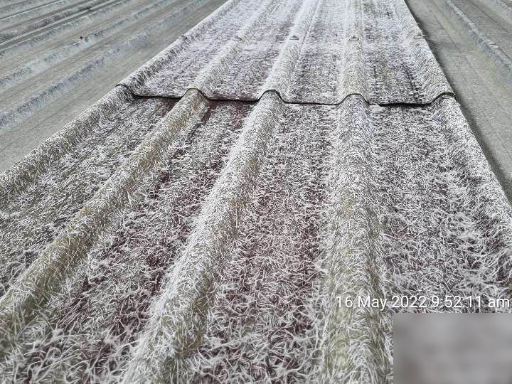 • Fibreglass sheeting has reached the end of its life span and exposed fibres are at risk of widespread ingress.