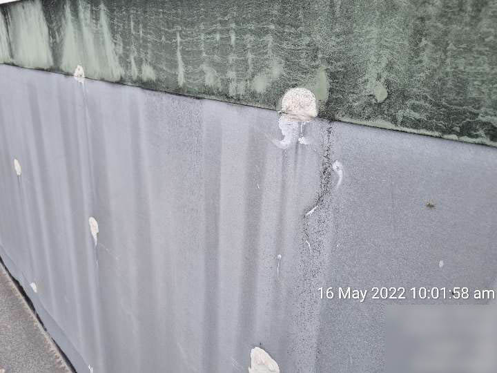 • Large parapet flashings have suffered buckling and deformation due to a lack of provision for thermal variation.Recommend providing sheeted walls cladding to these areas to ensure future